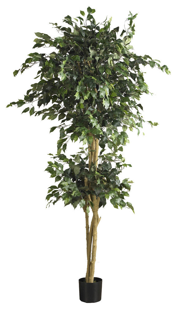 Show off your green thumb and pruning skills with this stately Double Ball Ficus tree. Several trunks of different sizes make up the center of this plant, while two different areas of silk leaves burst forth. The top crown of soft green leaves umbrellas the lower one, giving this Ficus tree a �balanced� eye-pleasing effect that is unlike any other plant you have ever seen. With over fifteen hundred leaves, this beautiful tree will bring outdoor lushness to any home or office setting.