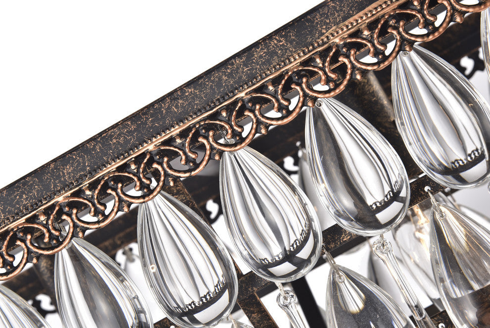 This opulent rectangular shaped chandelier is an even larger version of our popular EPD301AB and is a perfect fixture for a dining room or over a kitchen island. The brushed bronze hardware gives it an antique feel that is traditional yet contemporary This fixture makes a statement and adds drama with its four rows of cascading teardrop crystals filter the four lights and brighten the room. A 40-inch adjustable chains make it perfect for any room size or situation