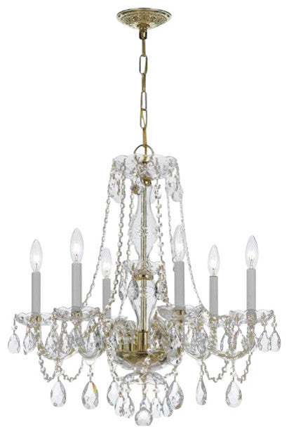6-Light Chandelier, Polished Brass, Clear Hand-Cut Crystals