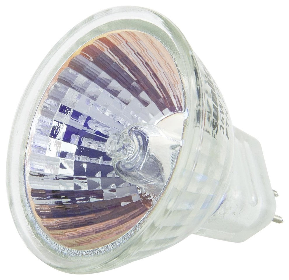 Sunlite Halogen bulbs produce more lumens per-watt (LPW) and have a longer lamp life than standard incandescent lamps. You can lower operation costs by more than 30% by using fewer halogen lamps to produce a greater amount of light. These MR11 GU4 Based Mini Reflector bulbs can last up to 1.8 years with normal household use of 3 hours a day and display a brighter, whiter light than incandescent bulbs. This Sunlite 35-watt, MR11 GU4, based Mini Reflector bulb offers a light output of 600 CBCP and has an average rated life of 2000 hours. Great for portable lamps, ceiling fixtures, track lighting, showcase displays and most common lighting needs.