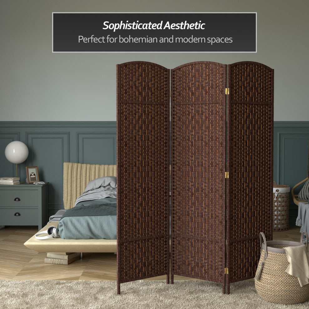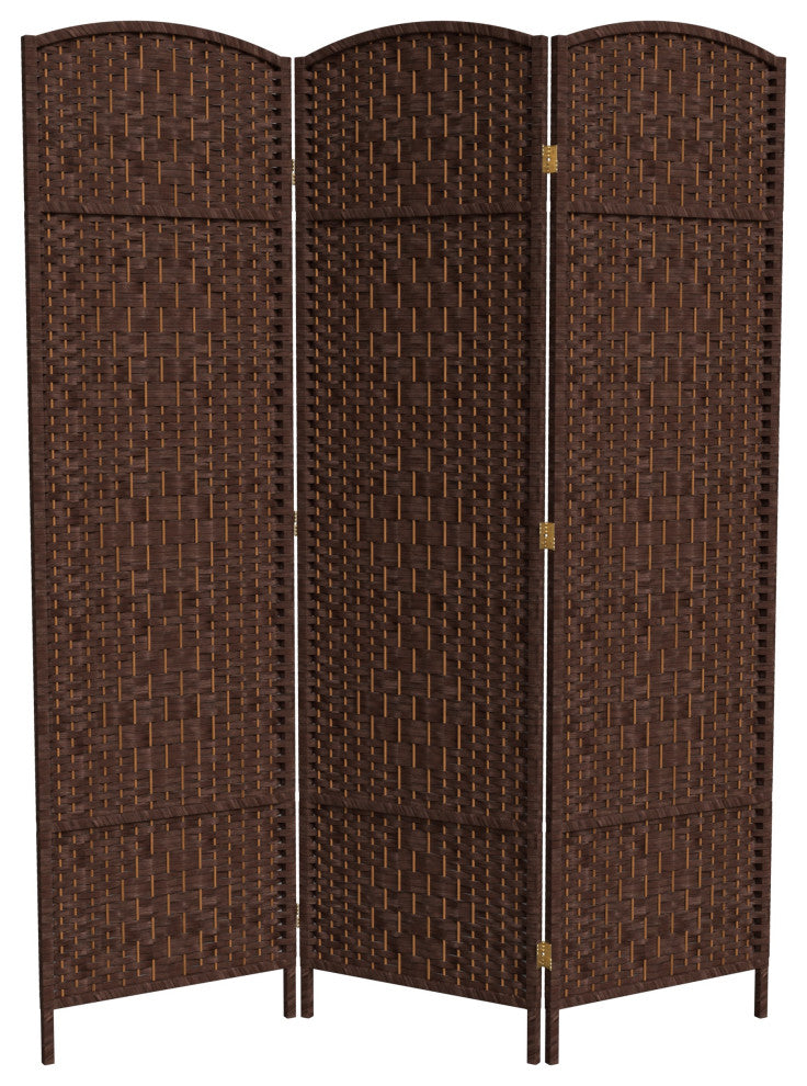 6' Tall Diamond Weave Fiber Room Divider, Dark Mocha, 3 Panel