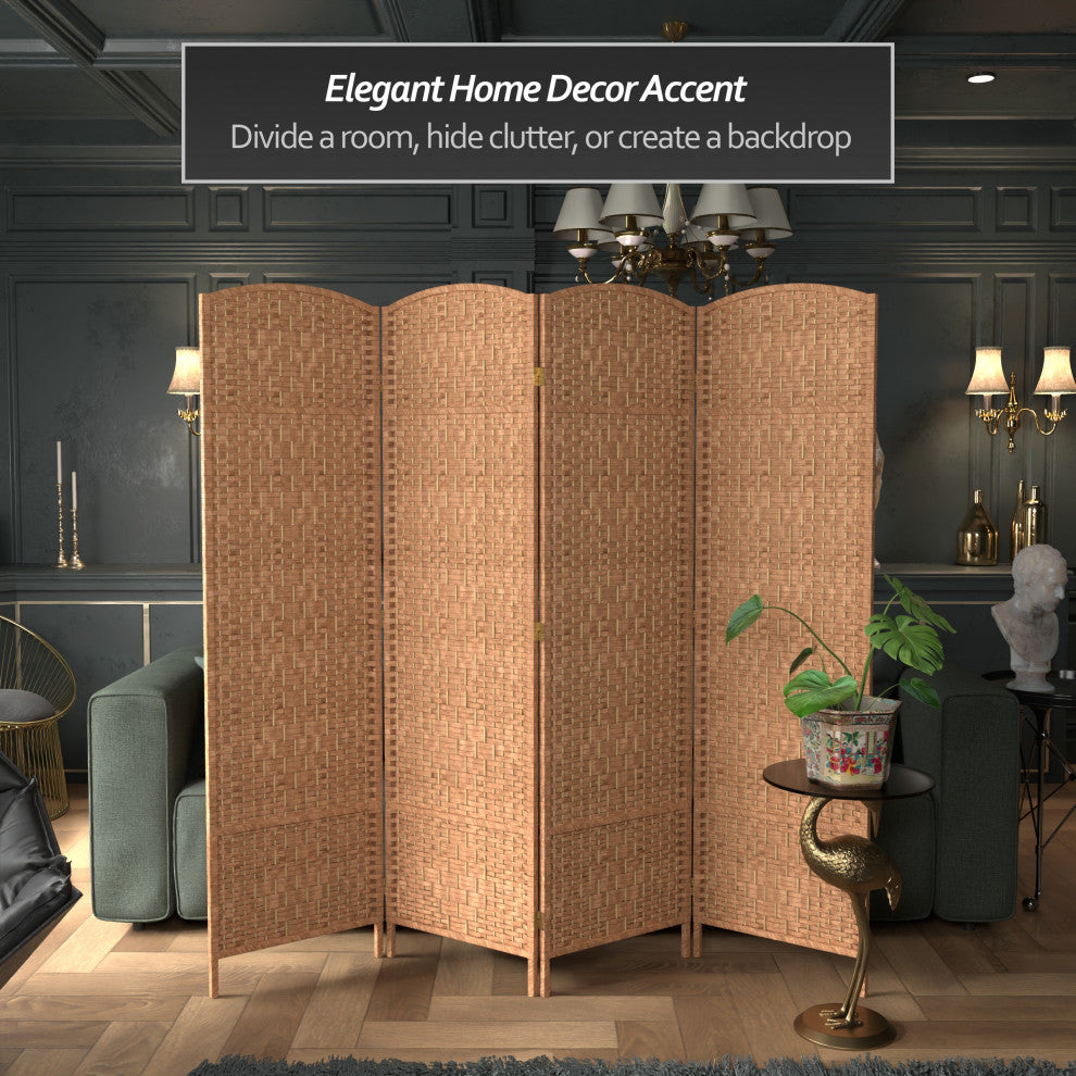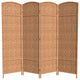 6' Tall Diamond Weave Fiber Room Divider, Natural, 4 Panel