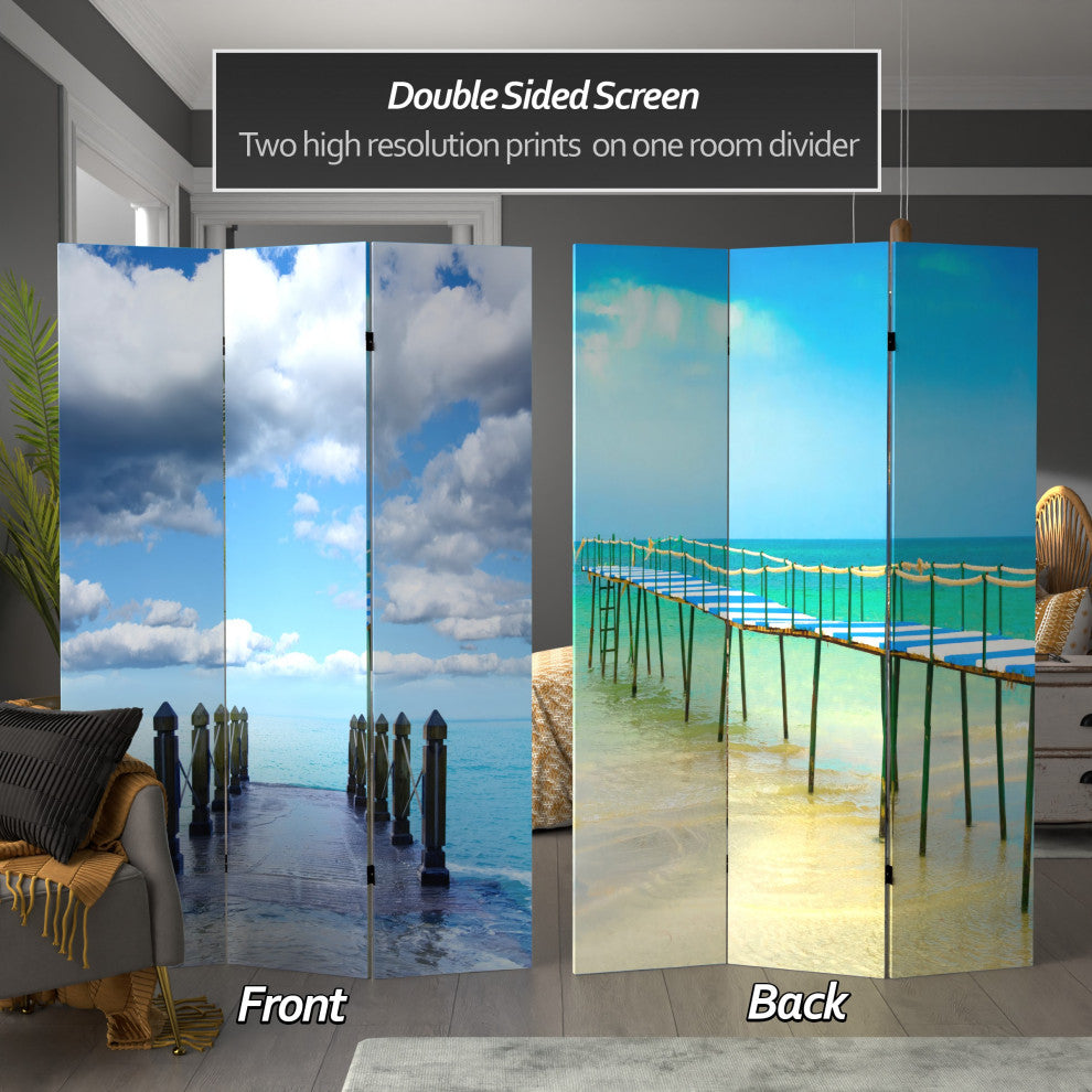 Stunning Photo Prints: Bring the summer vibes of the beach indoors with two high resolution photo prints on one room divider. Printed with fade-resistant, high color saturation ink, these vibrant, captivating images are powerful visual focal points.