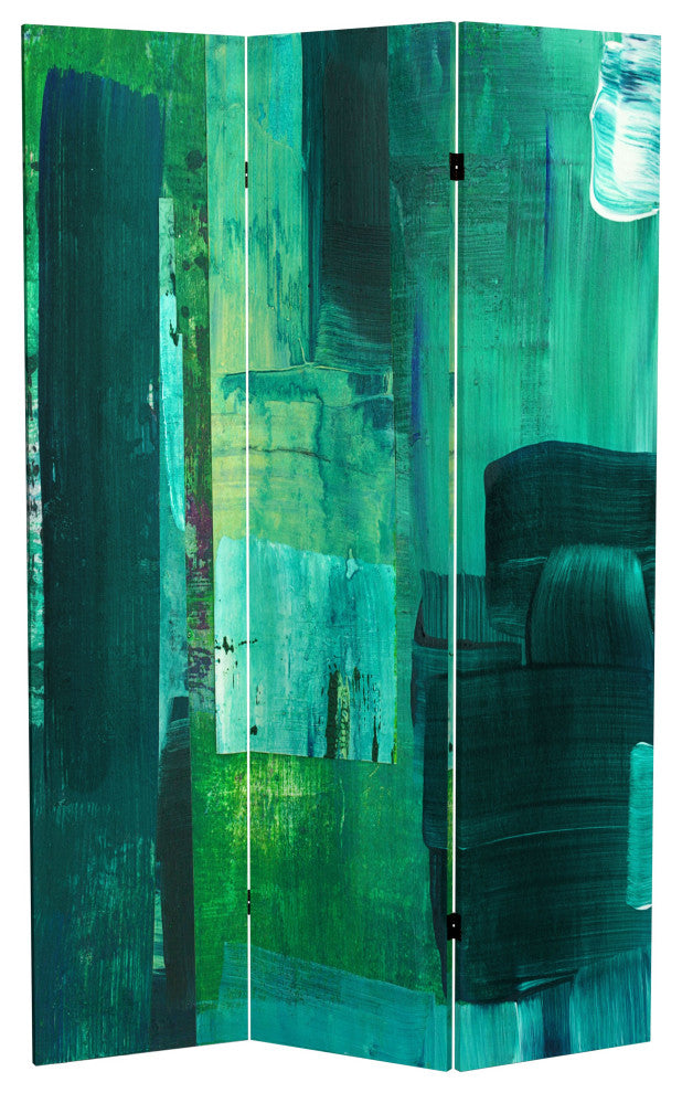 Discover a mesmerizing work of abstract expressionism by local artist Gita, blown up and reprinted in high definition on an extra large room divider. Experience the enchanting blend of rich greens and masterful brushstrokes by this talented painter, and create an artistic oasis in your space.