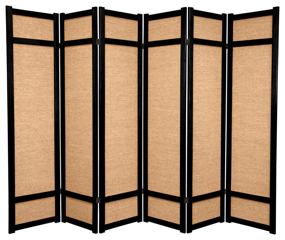 6' Tall Jute Shoji Screen, 6 Panel, Black