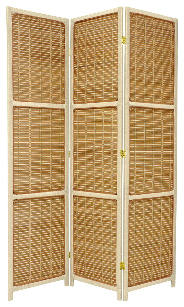 6' Tall Woven Accent Room Divider, 3 Panel, Cream