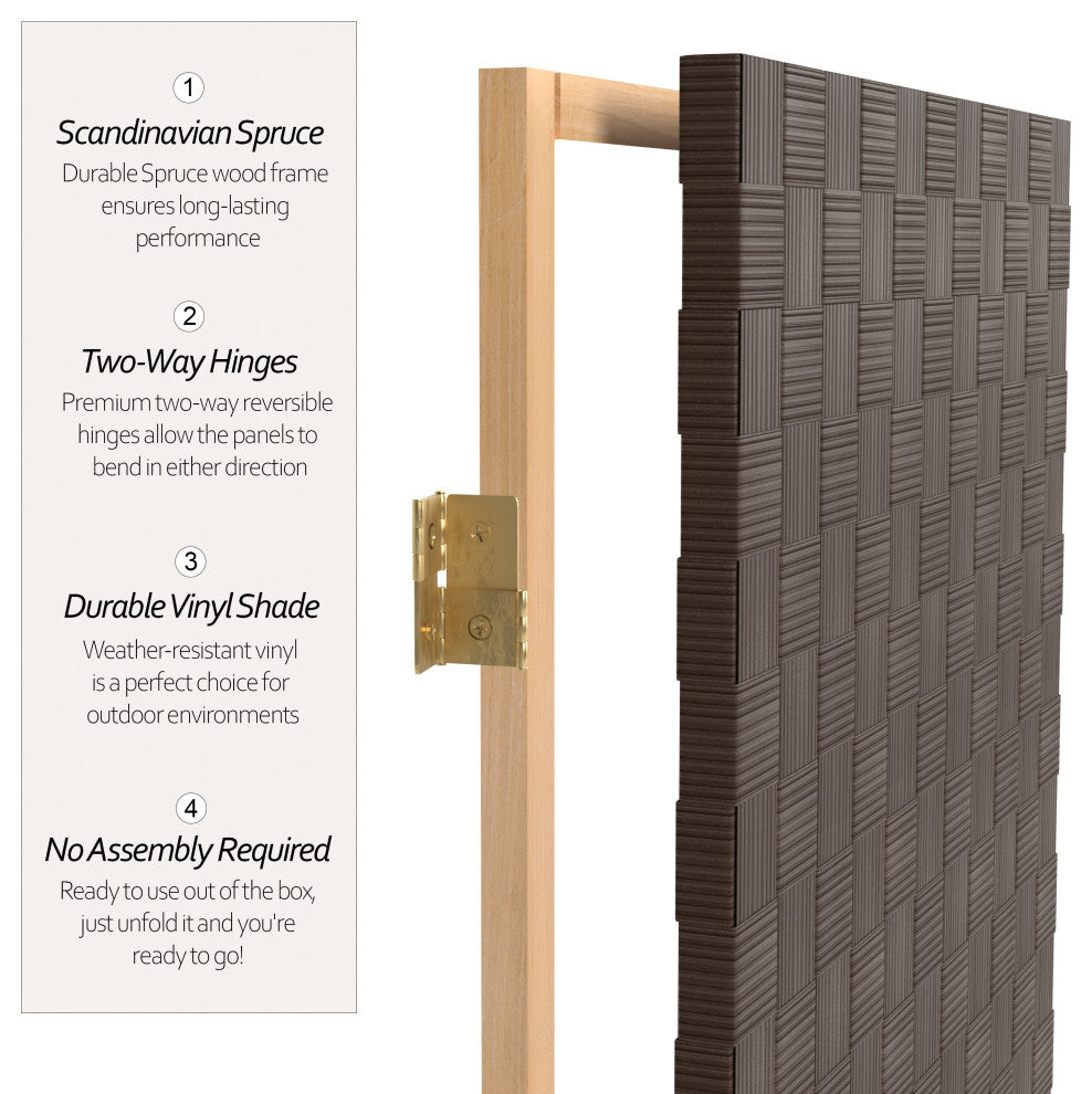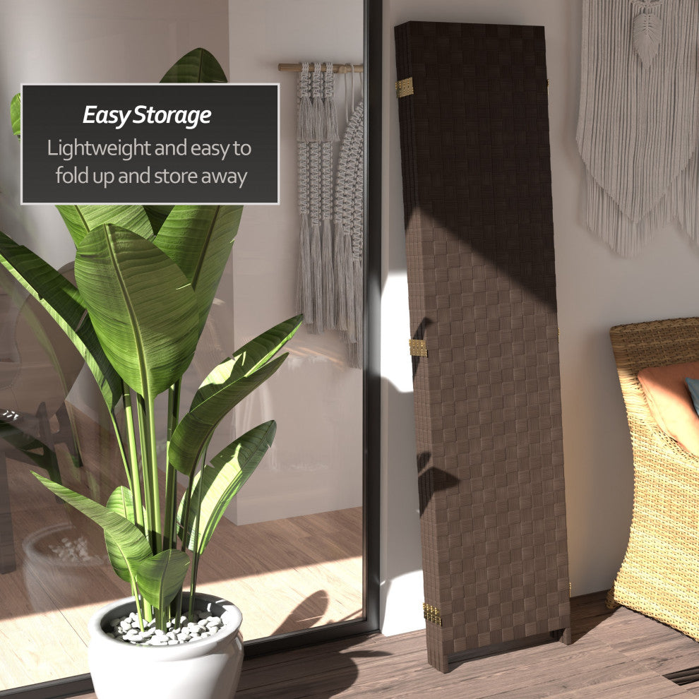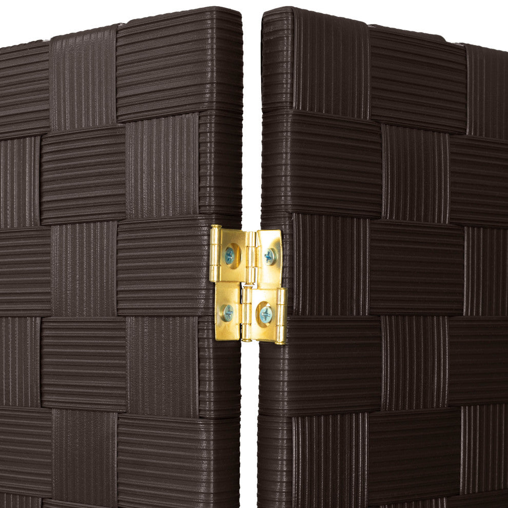 6' Tall Woven Fiber Outdoor All Weather Room Divider, 4 Panel, Dark Brown