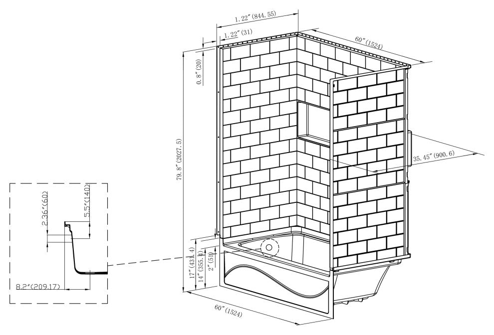 Our Vanity Art deep soaking surround and bathtub combo offers an elegant solution for your bathing space, combining aesthetics and functionality to elevate your bathroom experience. Designed for easy handling and quick installation, this combo features a direct-to-stud design that allows for a seamless 1 day, 1 person installation process. No need for complex renovations or multiple days of labor to get your bathroom upgraded efficiently and effectively with minimal disruption. The high gloss finish of the tub surround not only enhances the visual appeal of your bathroom but also ensures a stain resistant surface that is incredibly easy to clean. Say goodbye to stubborn stains and tedious scrubbing, maintaining a pristine and polished look is now effortless. Safety is paramount with the inclusion of a slip-resistant bottom in the soaking bathtub. This soaker tub provides added security, helping to prevent slips and falls, and making your bathing experience safer and more comfortable. Crafted from durable, high-quality materials, this bathtub wall panel and bathtub combo promises long-lasting performance and resilience against daily wear and tear. The sturdy construction ensures that your investment will stand the test of time, providing you with a reliable and beautiful bathing solution for years to come. In addition to its functional benefits, the sleek white finish of this alcove tub surround and bathtub combo adds a touch of elegance to your bathroom decor.!! The minimalist design complements a wide range of interior styles, making it a versatile choice for any home !!Features:STAIN RESISTANT: The high gloss finish not only adds a sleek and modern touch to your bathroom but also offers excellent stain resistance, making this deep bathtub easy to maintain and keep cleanSLIP RESISTANT BOTTOM: Safety is paramount with this tub combo, as our tub surround features a slip-resistant bottom to help prevent accidents and ensure a secure and relaxable footing while bathingDURABLE MATERIAL: Our tub insert is constructed from high-quality materials, this tub surround and soaking bathtub combo is built to withstand daily use and provide long-lasting performance with durabilitySEAMLESS APPEAL: These bathtubs for bathrooms with a direct-to-stud installation method ensure a seamless fit, creating a watertight seal that minimizes the risk of leaks and enhances the overall lookEASY INSTALLATION: Our bathtub surround wall kit is designed for easy handling and quick, 1 day, 1 person installation, making it effortless and convenient for any DIY enthusiast or professionalSpecification:Type: Bathtub + Bathtub WallColor: WhiteNumber of Pieces: 4Drain Location: LeftMaterial: AcrylicWeight: 158.5 Lbs.Dimensions: 60" W x 35.45" D x 79.8" HWarranty: 1 Year Limited