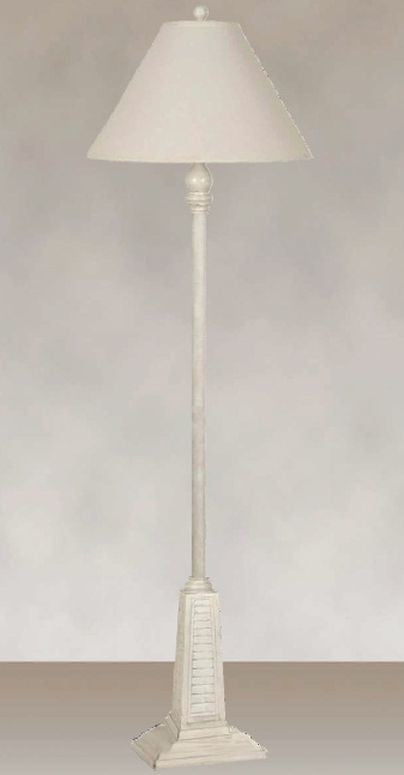 Bringing a touch of coastal-inspired charm, the 62" Whitewashed Floor Lamp blends classic design with subtle rustic details. The tall, slender frame is complemented by a shutter-style base, adding texture and character to any space. Topped with an ivory linen shade, this lamp diffuses a warm, inviting glow, perfect for cozying up a living room, bedroom, or reading nook. Crafted from durable polyresin, it offers long-lasting style and stability while maintaining an airy, relaxed aesthetic.Features• Easy to install and use with a standard 120-volt power supply• Lamp base crafted from high-quality resin that''s made to last• Compatible with E26 medium base bulbs for your convenience• Enjoy versatile placement with the included 72" power cord• Safety ensured with dry location listing for worry-free use• Fabric shade is low-maintenance and easy to cleanDimensions:Floor Lamp• Power Cord Length: 72 inches• Shade Depth: 18 inches• Shade Height: 12 inches• Shade Width: 18 inches