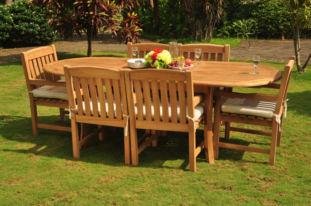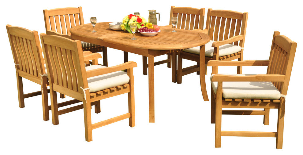 7-Piece Outdoor Teak Dining Set, 94" Extension Oval Table, 6 Devon Arm Chairs