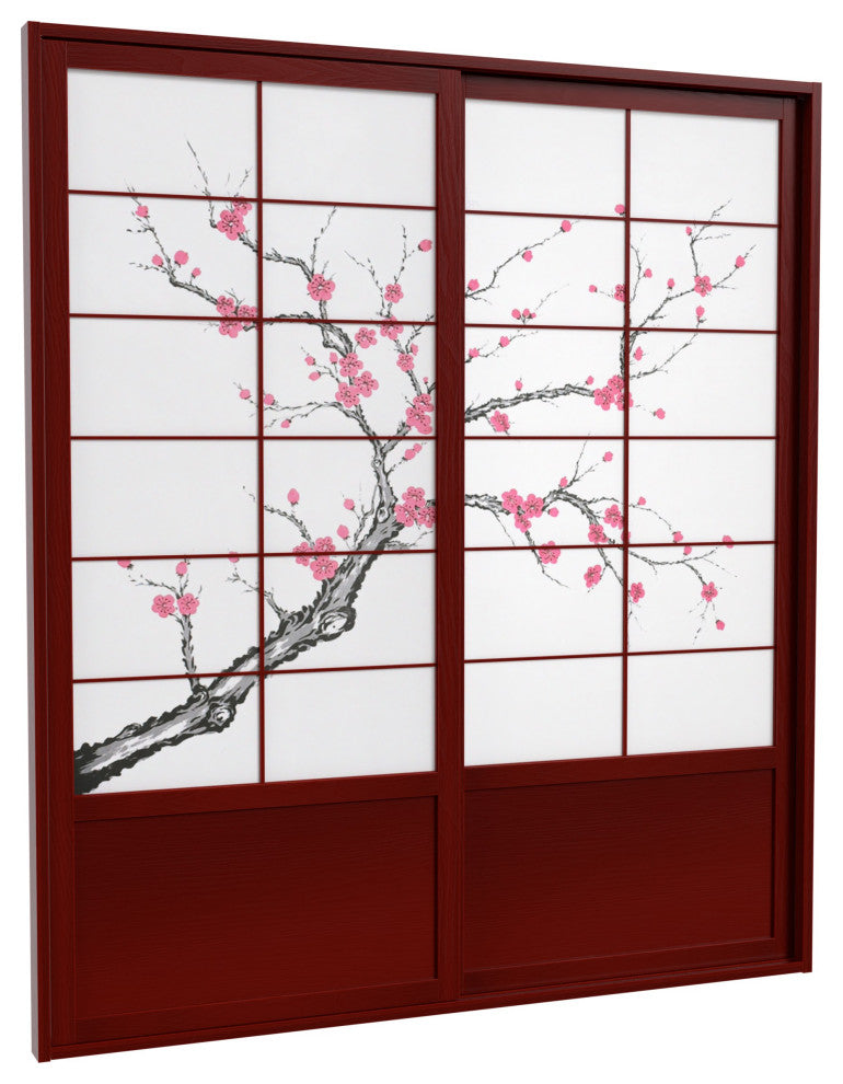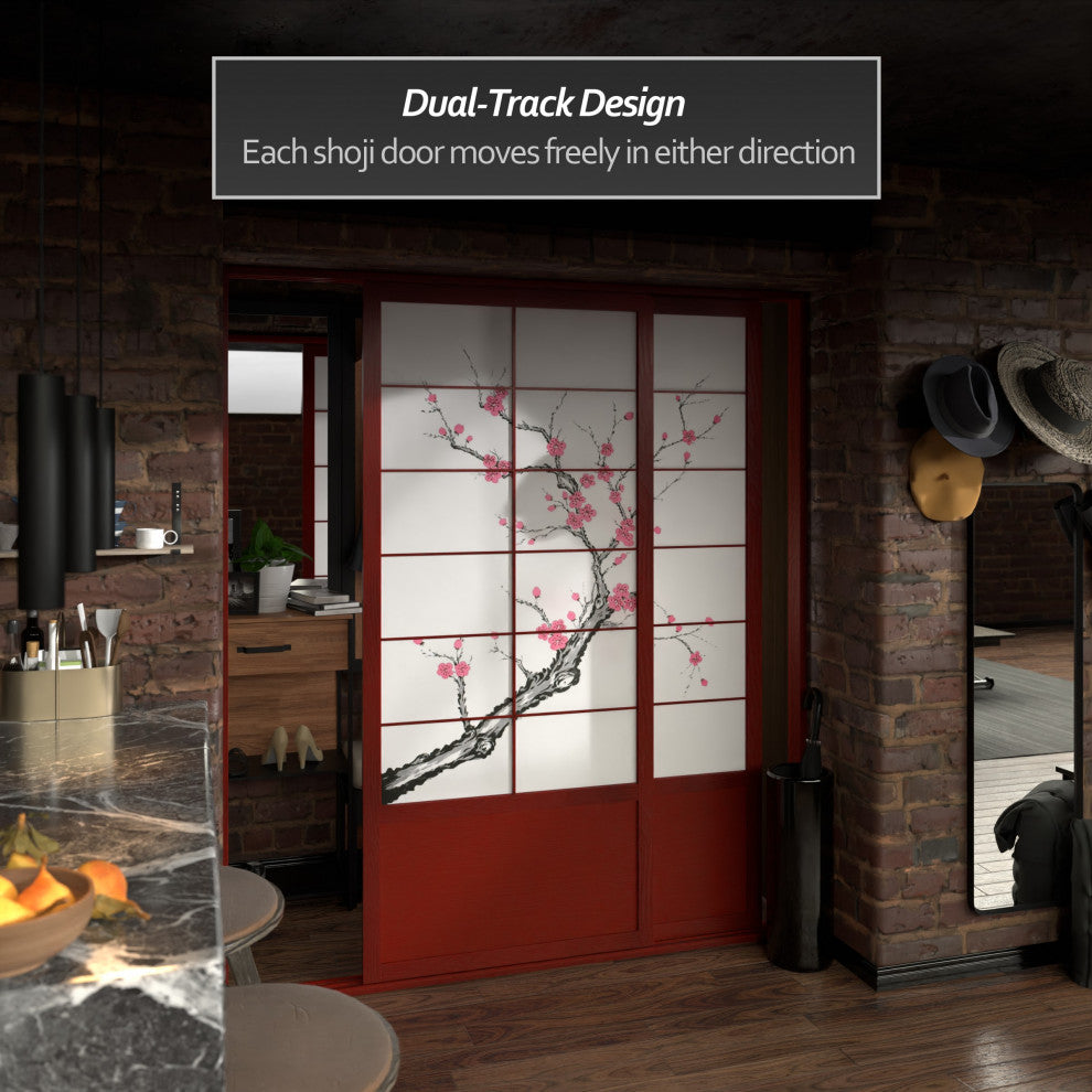 7' Tall Cherry Blossom Shoji Sliding Door Kit, Rosewood