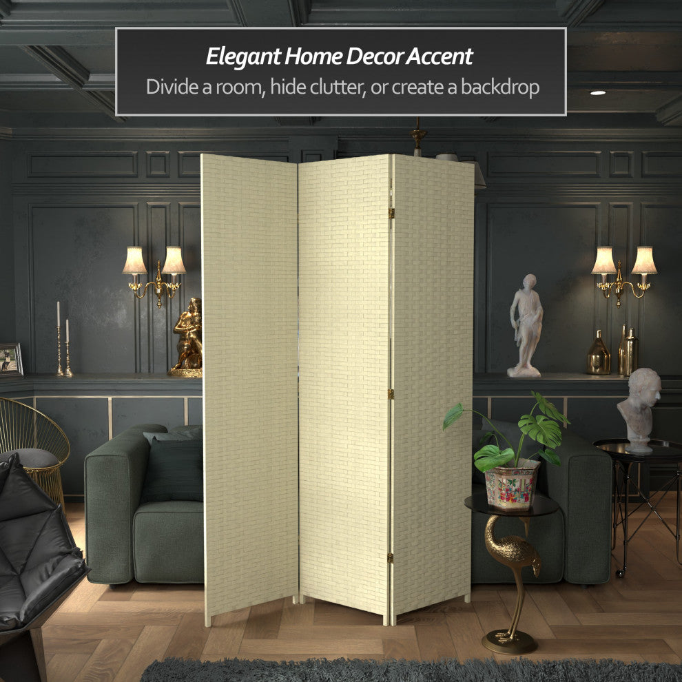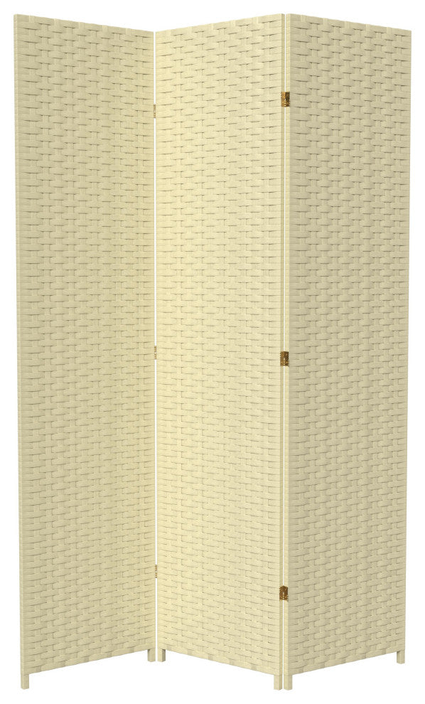 7' Tall Woven Fiber Room Divider, Cream, 3 Panel