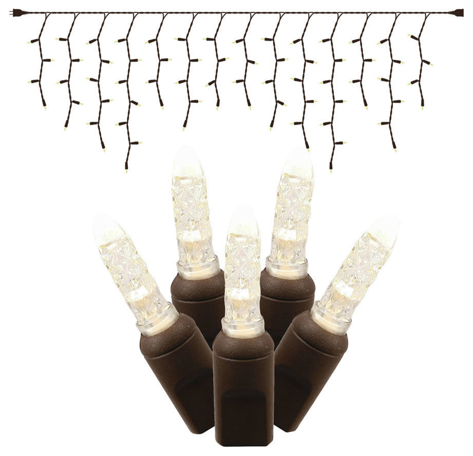 70Lt LED WmWhite/Bw M5 Icicle EC Set 9''LVickerman 70 Warm White M5 LED Single Mold Icicle Light on Brown Wire, 9'' Christmas Light Strand