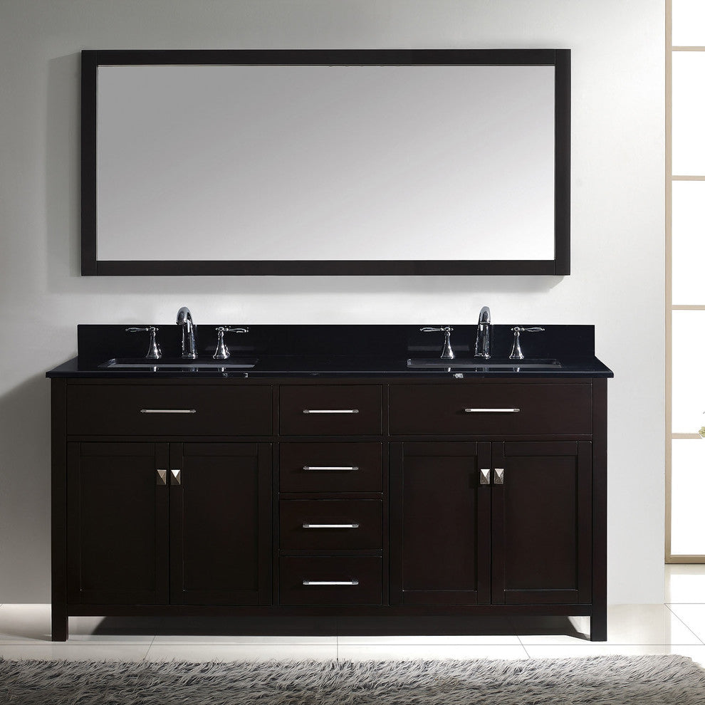 Details of the Virtu USA Caroline 72" Double Bathroom Vanity with Marble TopThe Caroline collection has a beautiful, clean design that will modernize any bathroom. It is constructed from a high quality solid oak wood and equipped with state of the art, soft closing door and drawer technology. Take notice in the beautiful Italian Carrara White Marble that''s sheer size alone guarantees that it will outlast the rest. Virtu USA has taken the initiative in changing the vanity industry by adding soft closing doors and drawers to their entire product line. The premium soft-closing hardware not only increases the safety of the vanity, but also its lifetime reliability. Available color Cashmere Grey, Espresso, Grey, White. Available in Round & Square SinkFeatures:Main Cabinet: 71.18"W x 21.65"D x 33.46"HMirror: 70.53"W x 31.14"H x 0.85"DMarble CountertopCashmere Grey Cabinet FinishFull Framed Mirror in Cashmere GreySolid Oak WoodWater Resistant Low V.O.C Sealer2 Concealed Shelves4 Doors with Concealed Soft-closing Hinges4 Functional Drawers with Soft Closing HingesChrome Handles with Brushed Nickel Highlights & Brushed Nickel KnobsStandard 8-inch Widespread Pre-Drilled HolesIncluded: (1) Cabinet, (1) Top, (1) Mirror, (2) BasinsMinimal Assembly RequiredSpecifications:Round Undermount SinkSink Configuration: DoubleBasin: 2,White,Double CenteredBasin Size: 19.29"W x 16.14"D x 8.27"HCountertop Dimension: 71.97"W x 22.05"D x 0.71"H(thickness)Backsplash: YesCabinet Material: Solid Oak WoodCabinet Hardware: Chrome Handles with Brushed Nickel Highlights & Brushed Nickel KnobsDrain Assembly Included: NoMirror: Single 70.53"W x 31.14"HInstallation: FreestandingShip Dimensions: 77"L x 40"W x 42"H