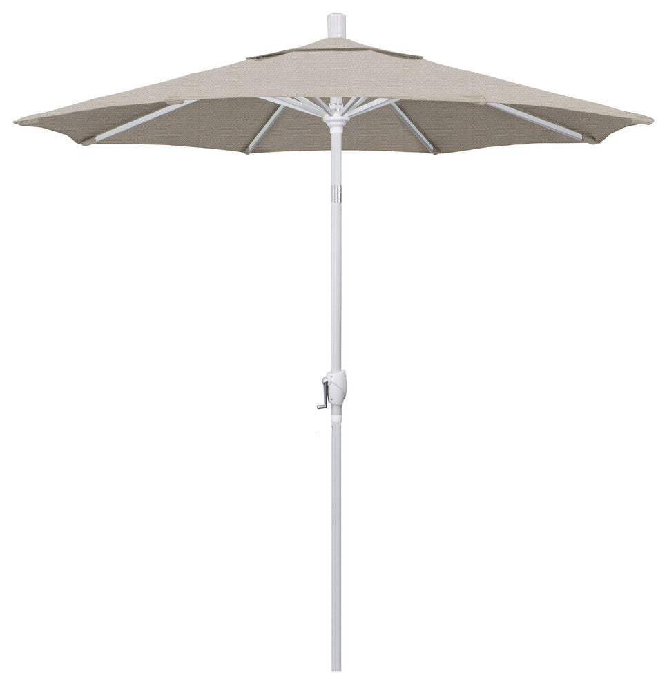 7.5' Matted White Push-Button Tilt Crank Aluminum Umbrella, Woven Granite Olefin