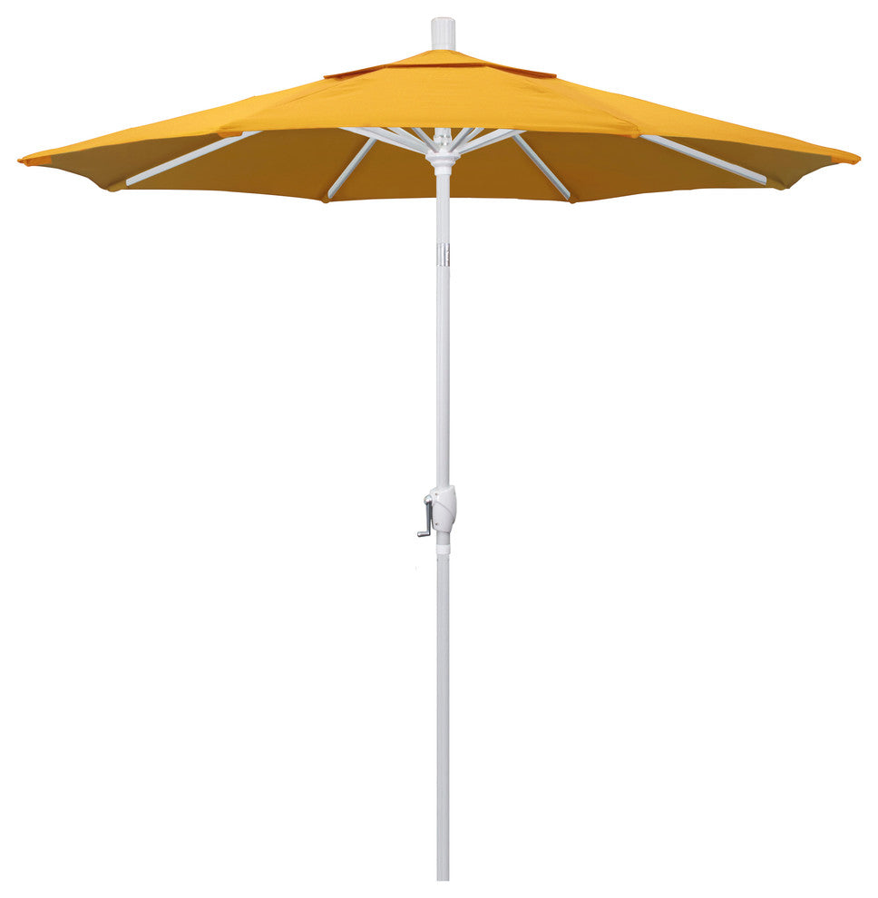 7.5' Matted White Push-Button Tilt Crank Aluminum Umbrella, Yellow Pacifica
