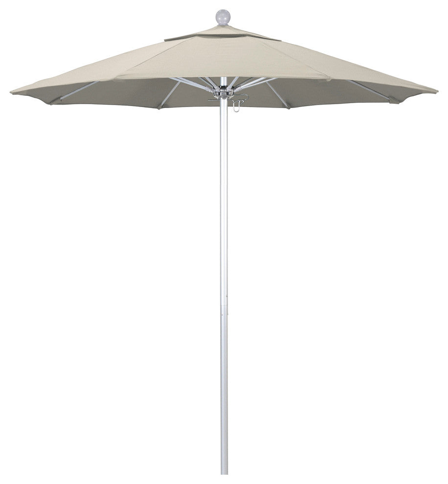 7.5' Silver Anodized Push Lift Aluminum Umbrella, Antique Beige Olefin