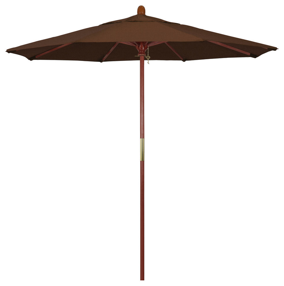The classic look of a traditional wood market umbrella by California Umbrella is captured by the MARE design series. The hallmark of the MARE series is the beautiful 100% marenti wood pole and rib system. The dark stained finish over a traditional marenti wood is perfect for outdoor dining rooms and poolside d-cor. The deluxe push lift system ensures a long lasting shade experience that commercial customers demand. This umbrella also features Olefin fabrics, which are made with high durability synthetic Olefin fibers that offer improved fade resistance over lesser grade fabric materials like polyester and cotton.Product Features-Olefin Fabric-7.5- size canopy-High durability resin hub-8 marenti wood ribs-Durable 1.5" marenti wood pole-Deluxe push lift system-Base sold separately
