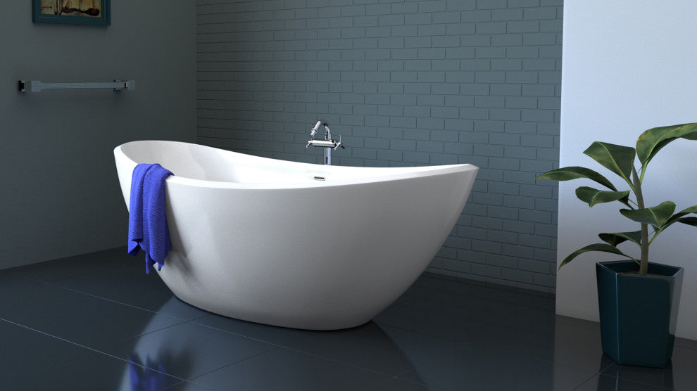 The glossy white Streamline N-10200-75FSWH-FM will upgrade your bathing experience. Measuring at 75 in., holding up to 90 Gal. of water, and featuring a pre-installed internal drain, this tub matches convenience with comfort. Crafted from acrylic, this bathtub will remain untouched for many years to come. And to make this even better, the freestanding style of this bathtub makes installation quick and convenient.