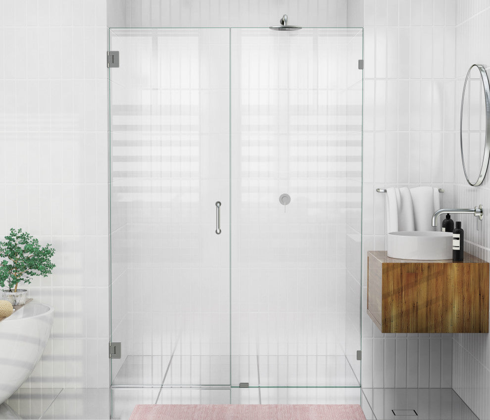 78"x58" Frameless Hinged Shower Door, Wall Hinge Door Style, Brushed Nickel
