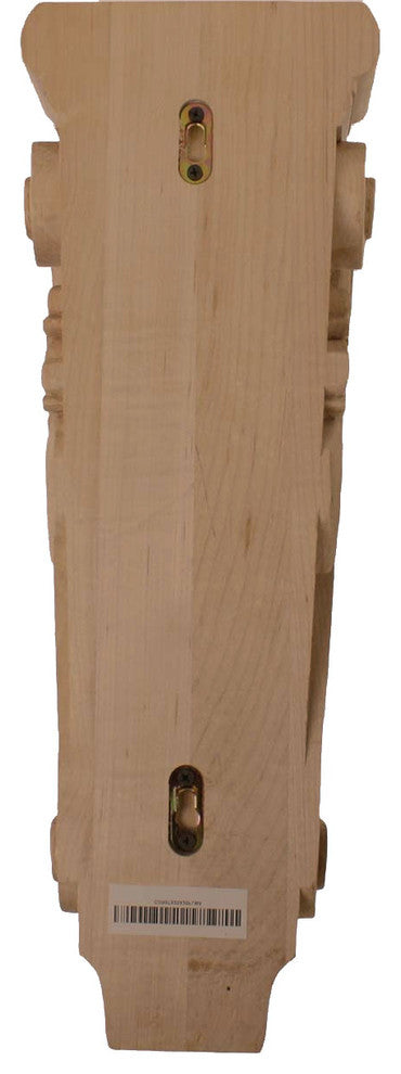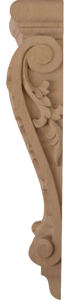 7"W x 4"D x 20"H Large Farmingdale Acanthus Pilaster Corbel, Cherry. Enjoy the warmth and beauty of carved wood corbels. With the proper installation, these wood brackets can support up to 250lbs, which gives you the flexibility to use a decorative bracket for support. Available in a variety of species, these brackets ship to you fully sanded and ready for your paint or stain.