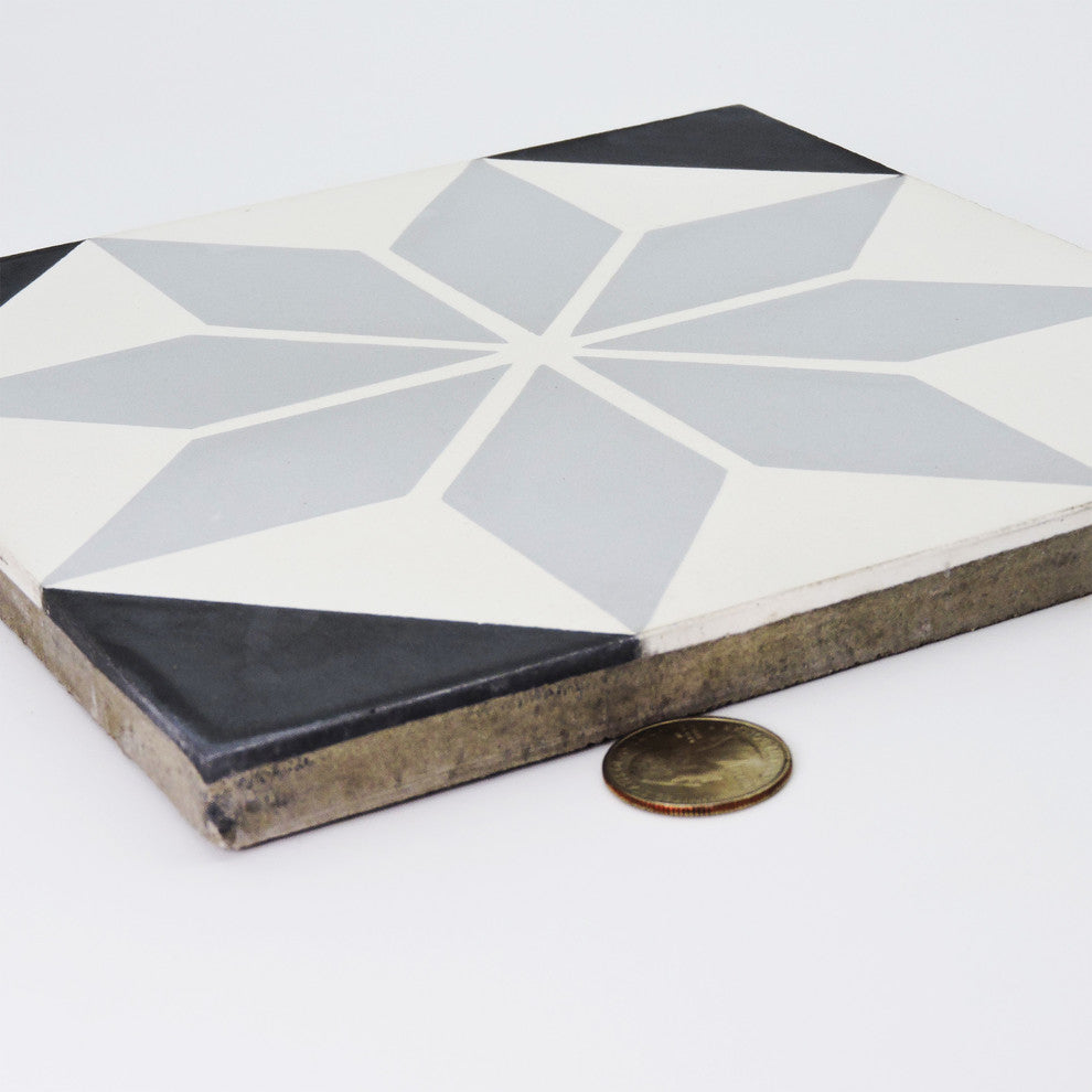 8"x8" Assila Handmade Cement Tile, Gray/Black, Set of 12