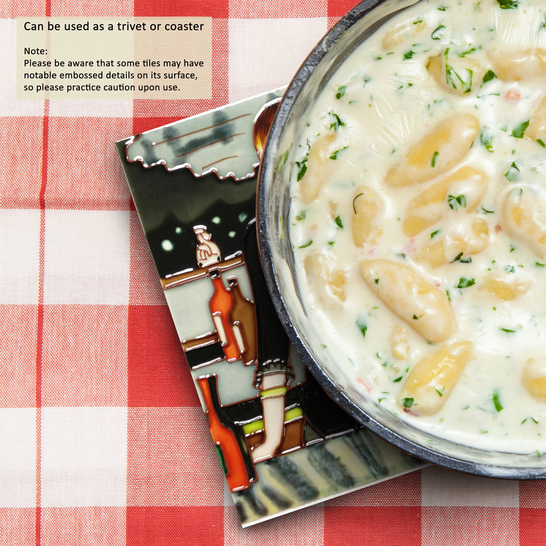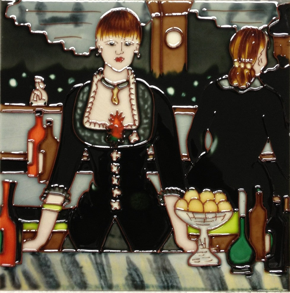 8x8" Girl Behind The Bar Art Tile Hand Painted Trivet Hot Plate Wall Decor
