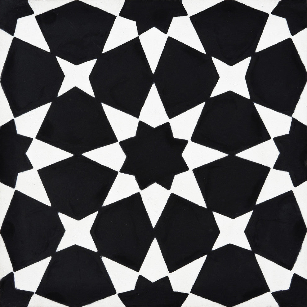 8"x8" Medina Handmade Cement Tile, Black/White, Set of 12