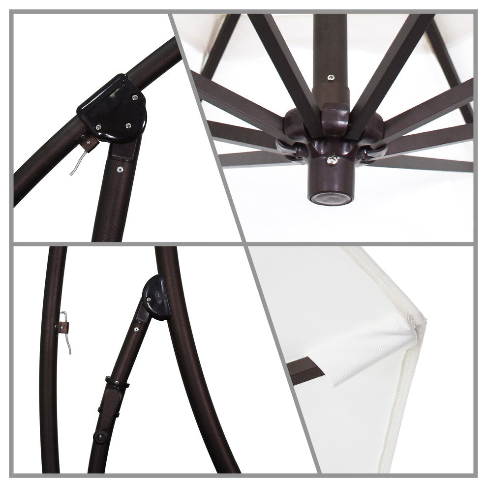9' Bronze Cantilever Crank Lift 360-Rotation Aluminum Umbrella, Sunbrella, Cocoa