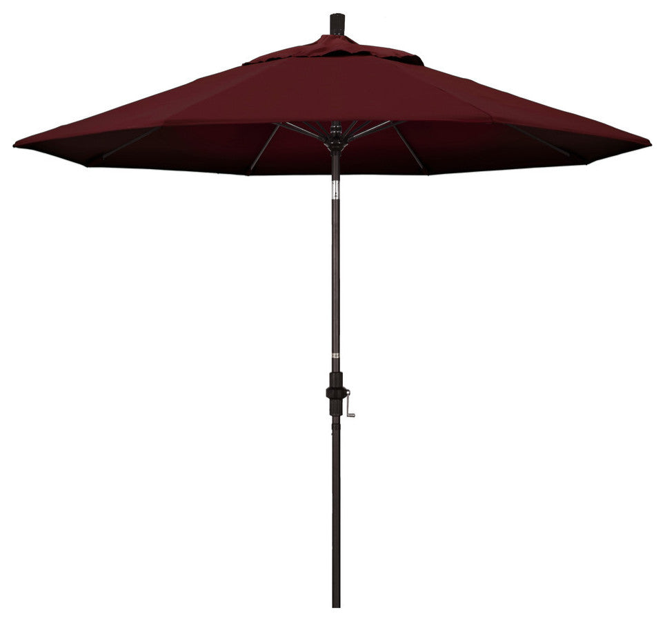 9' Bronze Collar Tilt Crank Aluminum Umbrella, Pacifica, Burgundy