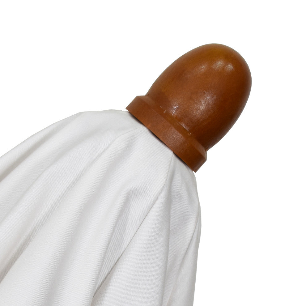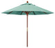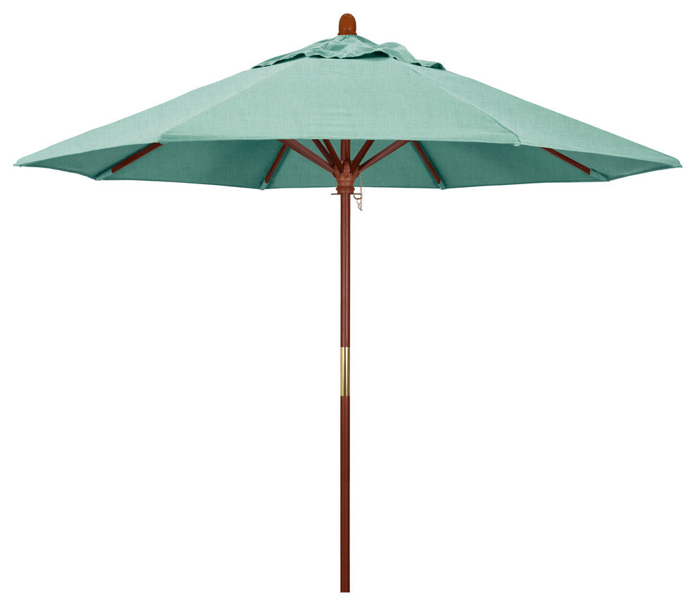 The classic look of a traditional wood market umbrella by California Umbrella is captured by the MARE design series. The hallmark of the MARE series is the beautiful 100% marenti wood pole and rib system. The dark stained finish over a traditional marenti wood is perfect for outdoor dining rooms and poolside d-cor. The deluxe push lift system ensures a long lasting shade experience that commercial customers demand. This umbrella also features Sunbrella fabrics, which are built on a foundation of solution-dyed acrylic yarn, the most resilient and solid material for prolonged sun exposure, to offer even longer color retention rating than competing material sources.Product Features-Sunbrella Fabric-9- size canopy-High durability resin hub-8 marenti wood ribs-Durable 1.5" marenti wood pole-Deluxe push lift system-Base sold separately
