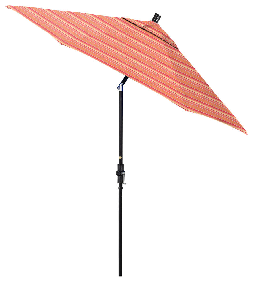 This extra-large 9 foot California Umbrella, market style is a top seller that offers all the features a residential owner demands in a beautiful market design. The tough aluminum frame is matched by the innovative use of the advanced collar tilt design. This style separates tilt position control from the user-friendly, crank-to-open feature. Owners have a complete range of tilt positions at their fingertips, with a resilient, easy to us umbrella frame that will bring years of shade enjoyment. This umbrella also features Sunbrella fabrics, which are built on a foundation of solution-dyed acrylic yarn, the most resilient and solid material for prolonged sun exposure, to offer even longer color retention rating than competing material sources.