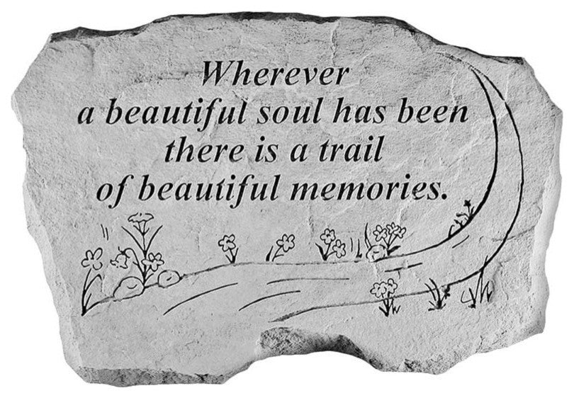 Celebrate and honor a final resting place and create a lasting memorial to a loved one with our solid cast stone memorial garden marker. Our substantial, solid cast stone memorial features a spiritual message in an Italic font, highlighted with black accent paint on a realistically textured natural stone. Hand-crafted in the USA by the famed craftsmen at Kay Berry, each hand-poured, heavyweight, weatherproof cast stone memorial has the look, feel and weight of true stone. This versatile stone garden memorial is guaranteed to last a lifetime as the crowning touch of a spiritual garden or, optionally, as a touching wall display. 16"Wx10.5"H. 11 lbs.
