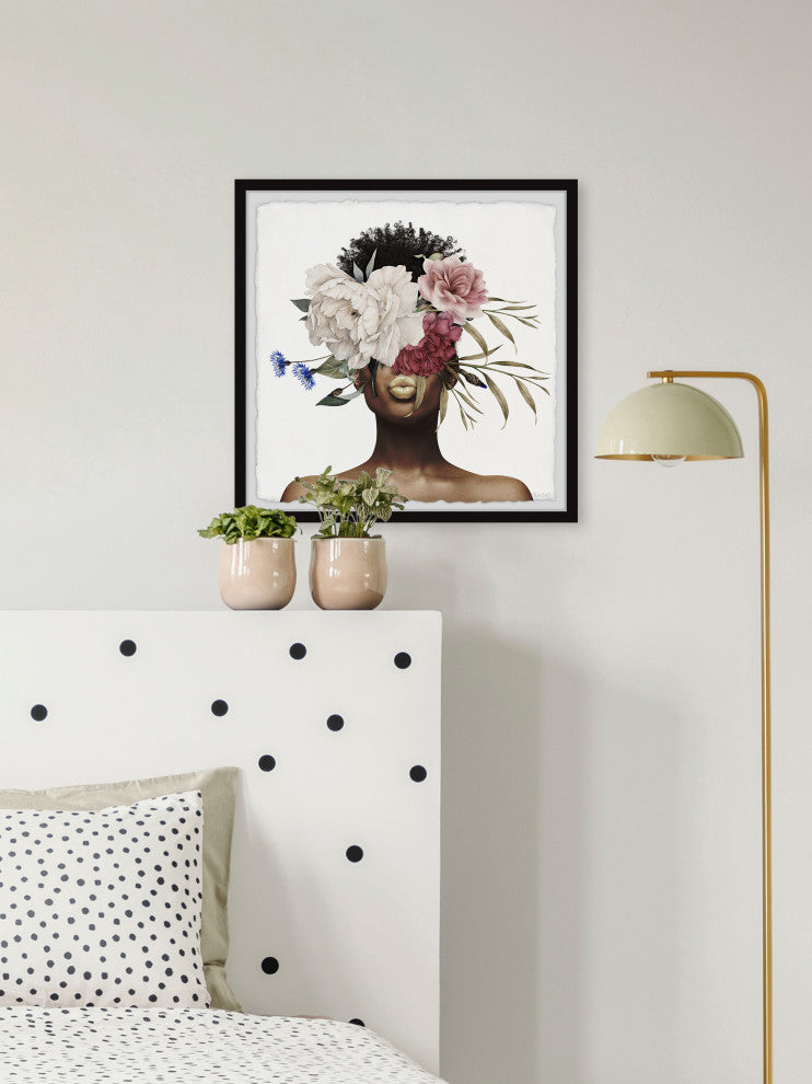 Celebrate springtime with this photographic print that features an up-close profile of a beautiful woman with flowers overlapping her face. Proudly printed in the USA, this piece is printed on high quality archive paper and professionally hand-framed. With wall-mounting hooks included, this artful accent is ready to hang up as soon as it reaches your front door.