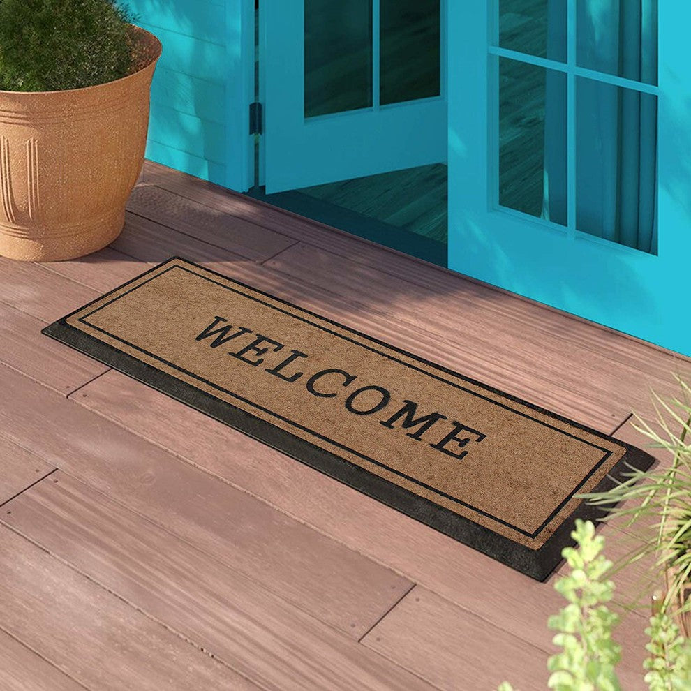 A1HC First Impression Welcome Hand-Crafted Rubber Coir Double Door Mat, 18"X48"