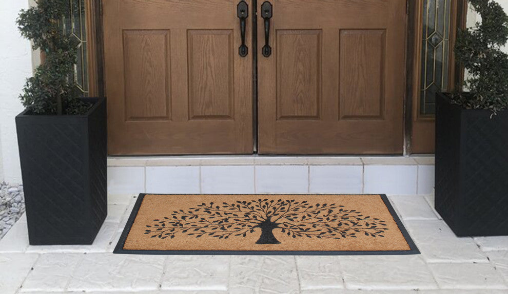 More than a decorative enhancement this rubber & coir molded doormat is made With a heavy rubber backing that anchors it in place while you brush dirt & debris from shoes & boots. The tufted coco-fiber facilitates scrubbing soles clean. Keeps your floor clean when you decorate your entryway with this beautiful doormat, which includes a sturdy rubber backing to help in keep the mat in place & prevent slips. The attractive design of this Coir Door Mat creates a welcoming entrance for your guests & the durable coir material holds up to lots of foot traffic. This Welcome Mat Recommended for outdoor use in covered areas. Vacuum or shake the mat regularly for longer life.>NEWLY DEVELOPED FLOCKED RUBBER & COIR MOLDED DOOR MAT: This is a completely newly designed door mat with a large wipe area. The large size door mat is made of Flock Natural coir fiber & high quality rubber. This mat has a large coir area to clean & wipe your shoes which keeps your house clean. The coir is Molded which makes the door mats stronger, more durable, minimizes shedding significantly making it last thrice as long as regular door mats. Each outdoor rug is QC inspected for 20 quality check points.>HEAVY-WEIGHT MOLDED RUBBER BORDER DOOR MAT: The heavy rubber backing makes sure the doormat in anchored to its place and does not get blown away by wind or tear apart by aggressive wiping.>SUPER TOUGH DOOR MAT: constructed with thick coir bristles on the topside molded with rubber base, the doormat is built tough by nature; its strong bristles create a wiping area and the rubber base adds to the sturdiness. This premium outdoor rug will help stop dirt, debris, moisture and other particles from being tracked into your home and will last at least 3 times longer than regular door mats.>PLACE WELCOME MAT BEFORE EVERY EXTERIOR DOOR: Use this welcome mat on a patio, in a garage, laundry room, entryway, and anywhere there is high traffic from outside. Recommended to be used in covered outdoor areas.>PERFECT SIZE DOORMAT FOR YOUR LARGE ENTRYWAY: Front doormat measures 30" x 48" and is 1" thick to allow your door to easily pass over the mat without getting stuck. This outdoor mat is ideal for both single and double door entrances and comes in Artist inspired prints which are anti fade will last even if used in high traffic areas.>ENVIRONMENTAL FRIENDLY OUTDOOR RUG: made from 100% Hard Wearing Coir Eco friendly Rubber base .These doormats are completely Biodegradable & compostable. Adds a unique touch to your front door or back door while being very functional.>RECOMMENDED TO BE USED IN COVERED OUTDOOR AREAS: Only for use in covered outdoor areas. Do not expose directly to rain.