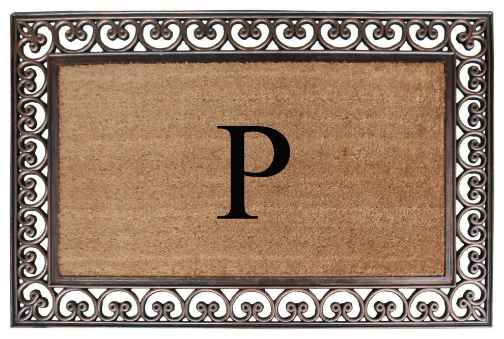 A1HC Rubber & Coir Classic Paisley Border Large Double Monogram Doormat 30X48, P