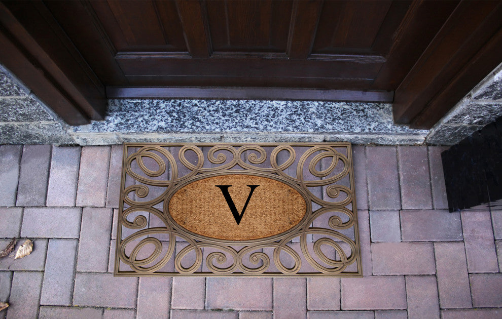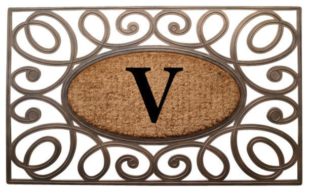 A1HC Rubber & Coir Elegant Circles Princess Doormat, Monogrammed, V