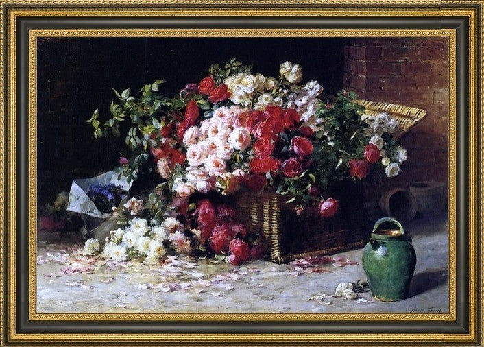 18" x 27" Abbott Fuller Graves Still Life with Roses framed premium canvas print reproduced to meet museum quality standards. Our Museum quality canvas prints are produced using high-precision print technology for a more accurate reproduction printed on high quality canvas with fade-resistant, archival inks. Our progressive business model allows us to offer works of art to you at the best wholesale pricing, significantly less than art gallery prices, affordable to all. This artwork is hand stretched onto wooden stretcher bars, then mounted into our 3 3/4" wide gold finish frame with black panel by one of our expert framers. Our framed canvas print comes with hardware, ready to hang on your wall. We present a comprehensive collection of exceptional canvas art reproductions by Abbott Fuller Graves.