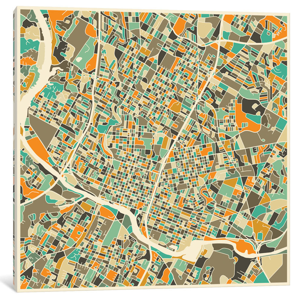 "Abstract City Map of Austin" by Jazzberry Blue, 18x18x1.5