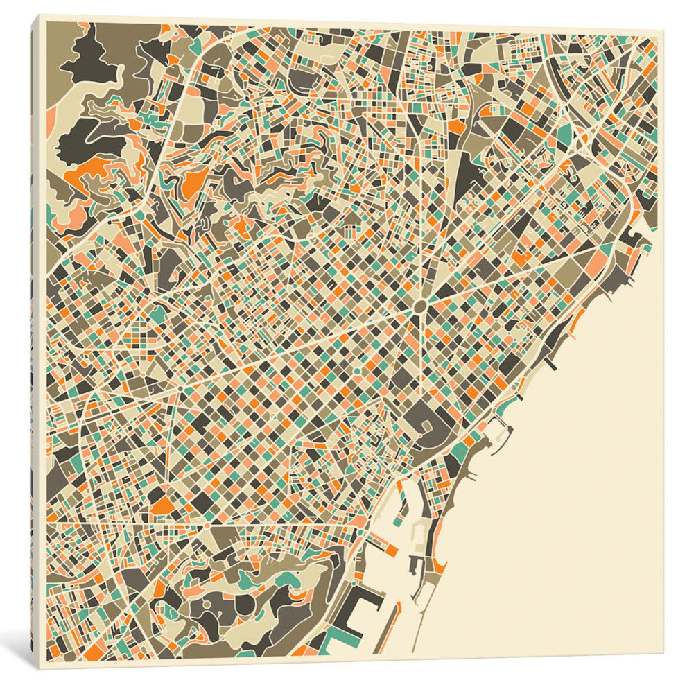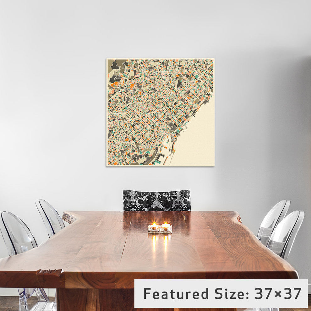 "Abstract City Map of Barcelona" by Jazzberry Blue, 26x26x1.5