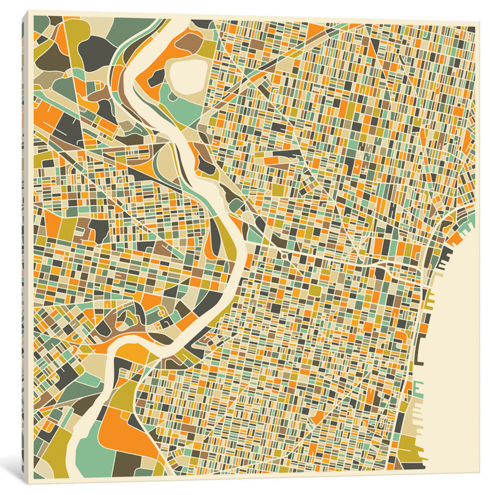"Abstract City Map of Philadelphia" by Jazzberry Blue, 18x18x1.5
