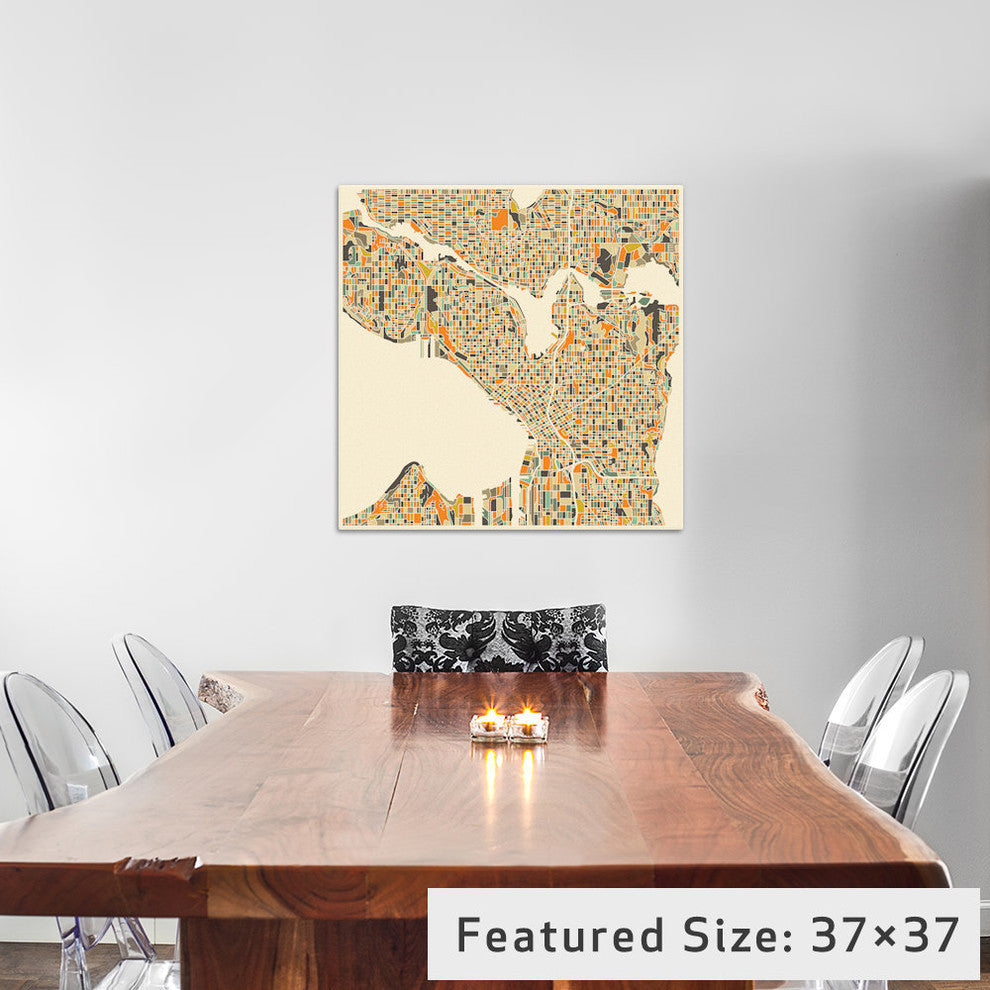 "Abstract City Map of Seattle" by Jazzberry Blue, 26x26x1.5