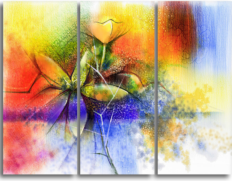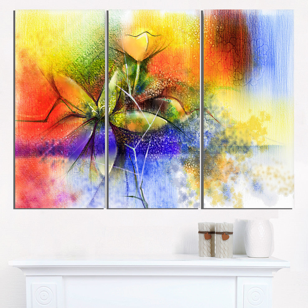 "Abstract Colorful Flower Fusion" Metal Wall Art, 3 Panels, 36"x28"