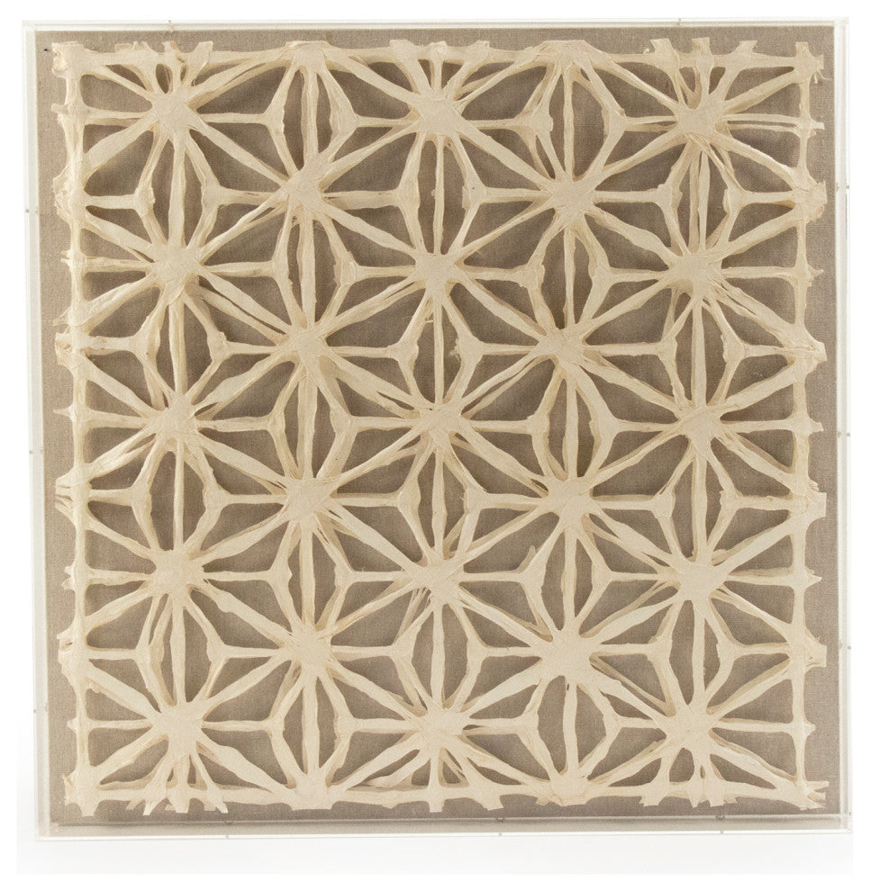 Geometrical paper artwork on neutral background. Framed in acrylic.