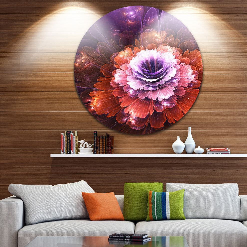 Abstract Pink Fractal Flower, Floral Digital Round Metal Wall Art, 38"