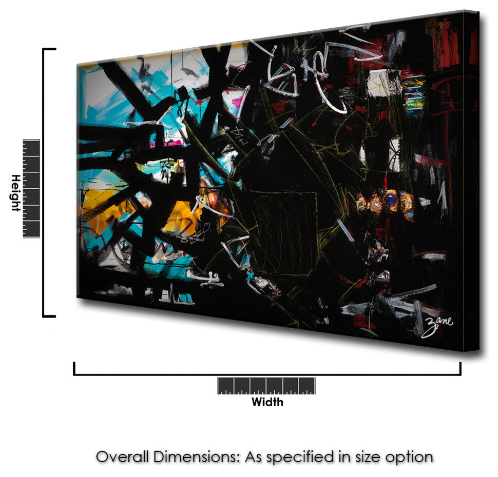 Salvatore Principe ''Abstract XV'' features an interpretation of night vs. day. In the light the wondrous city sparkles; life is vibrant and full of color. When night falls the dark spirits come out to play and lights shine bright enough to light the path to malice. Add intrigue to your space when you bring this piece and its dynamic energy to your space. Handcrafted in the United States, this gallery-wrapped canvas art arrives ready to hang on your wall.
