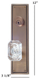 This is a reproduction of the Georgian Design shown in the Phoenix Lock catalog of 1898. Displayed with a Premium Crystal Andover Knob. Available in a huge assortment of functions including Bed/Bath, Hall/Closet, Single or Double Cylinder deadbolt and a wide range of Mortise body functions. This collection is especially dramatic in the antique finishes including antique brass, copper, and nickel. All BRASS Accents finishes are hand-rubbed and assembled in USA.