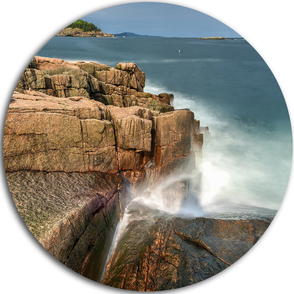 Bring Contemporary Abstraction to your home with this large Circle Metal wall art. This Acadia National Park Coast Metal Artwork makes it the focal point of any room or office.