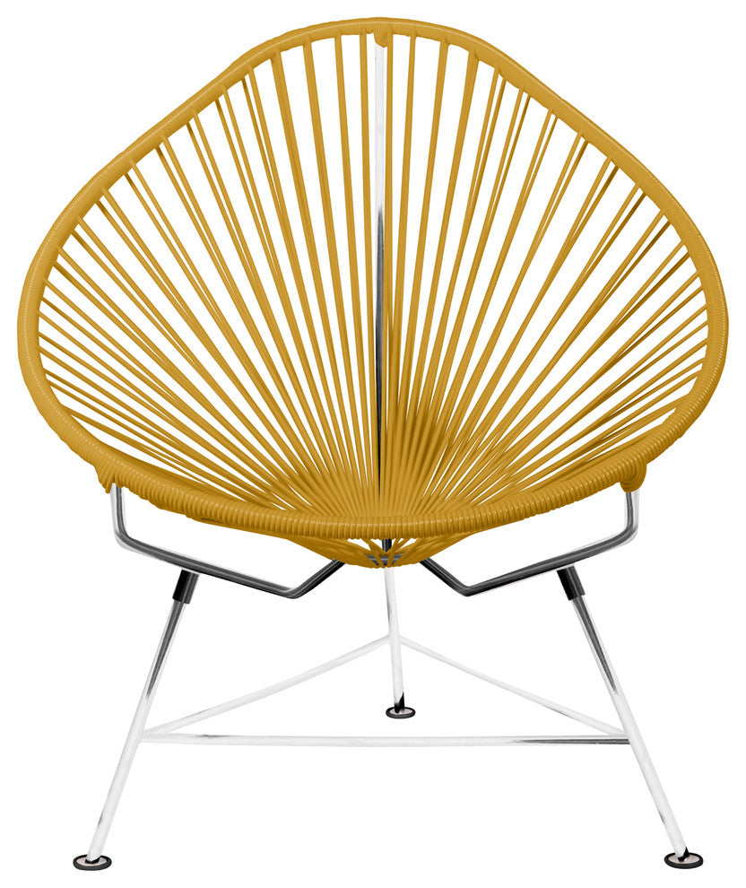 With a more laid back pear-shaped profile than our Innit Chair, the Acapulco Chair is comfortable without a cushion and made to last stylishly for years with its durable plated steel frame and colorfast UV-resistant woven vinyl cord.Available in an ace range of 18 vinyl cord colors and 5 frame finishes; the Acapulco Chair is breathable, stackable, easy to clean and perfect for both residential and commercial applications. Note: Chrome and copper frame finishes are suitable for indoor use only, while our stainless version is perfect for your yacht or seaside home.